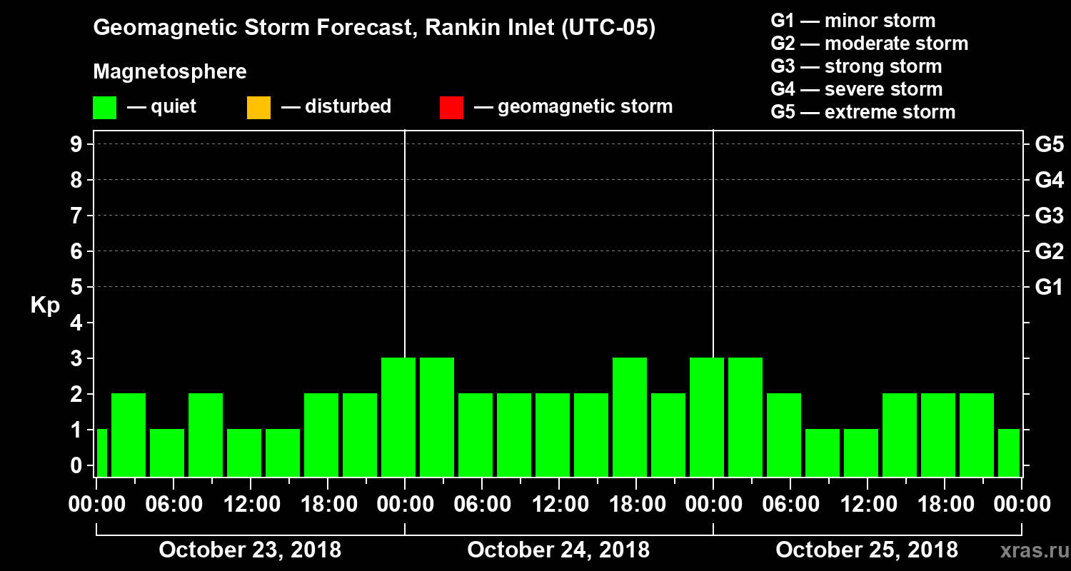 Geomagnetic storm forecast in Rankin Inlet for Oct 23, 2018
