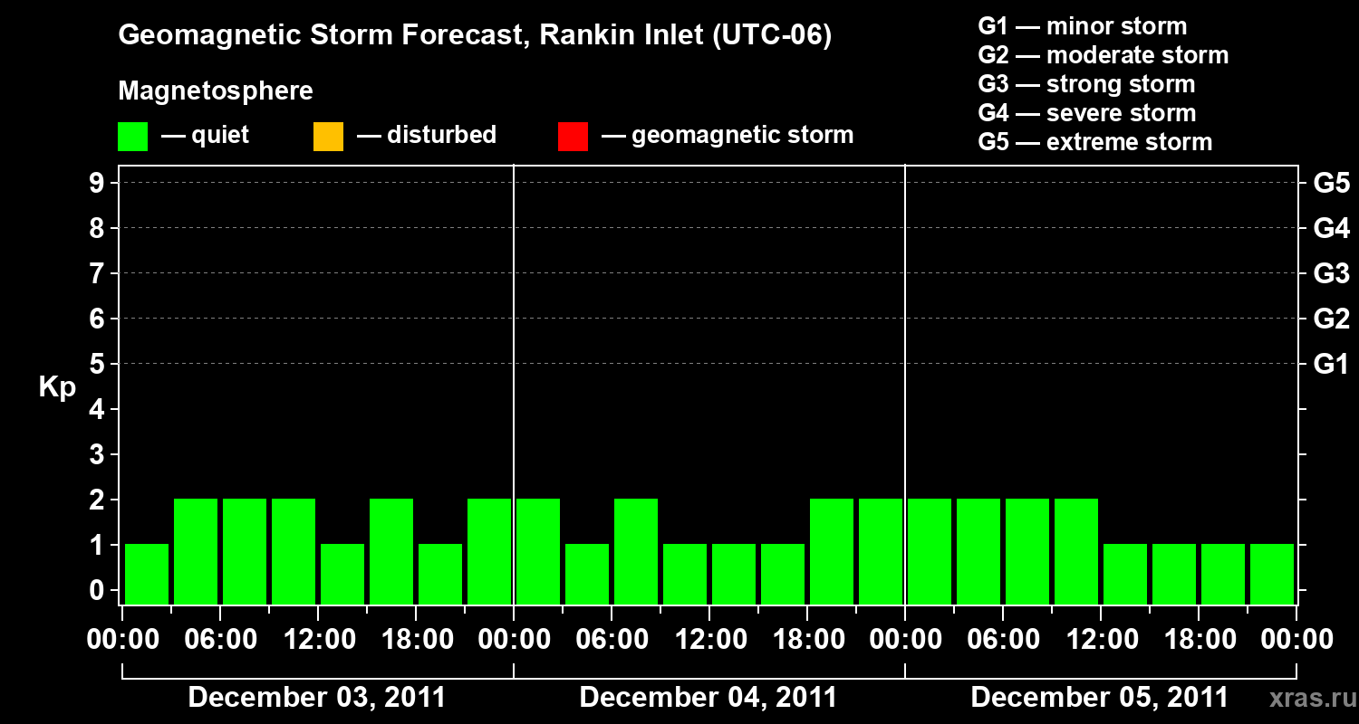 Geomagnetic storm forecast in Rankin Inlet for Dec 03, 2011