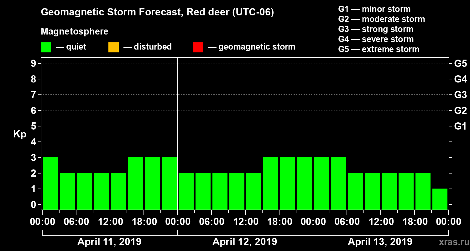Geomagnetic storm forecast in Red deer for Apr 11, 2019