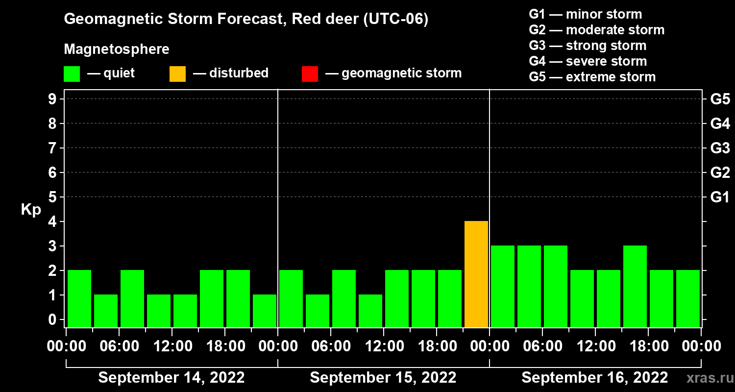 Geomagnetic storm forecast in Red deer for Sep 14, 2022
