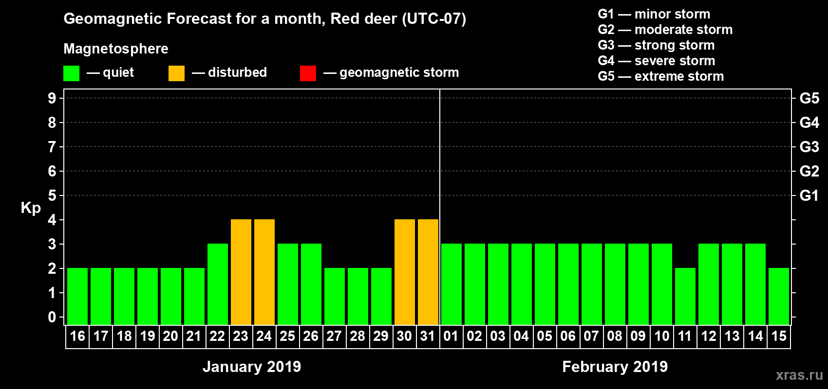 Geomagnetic storm forecast in Red deer for Jan 16, 2019