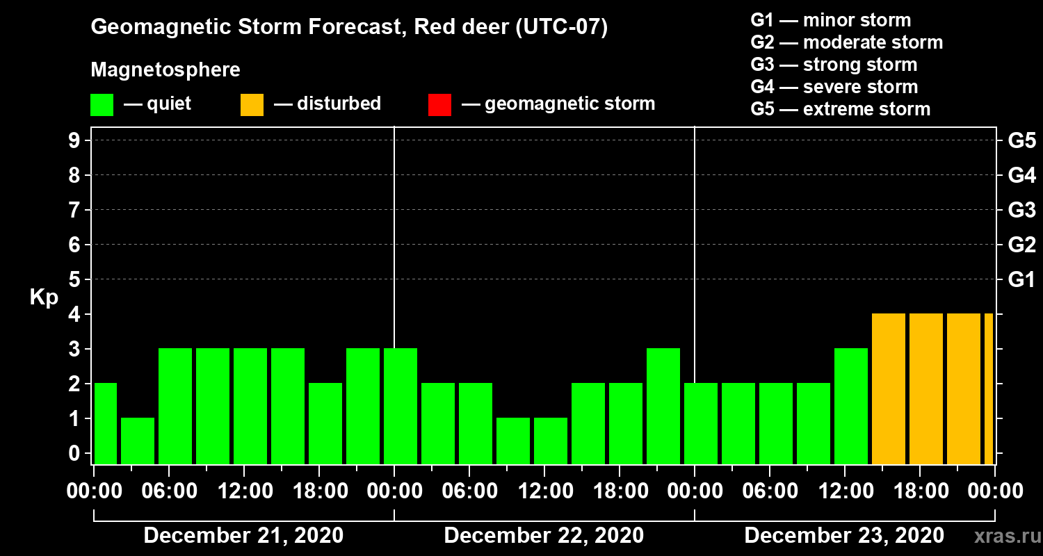 Geomagnetic storm forecast in Red deer for Dec 21, 2020