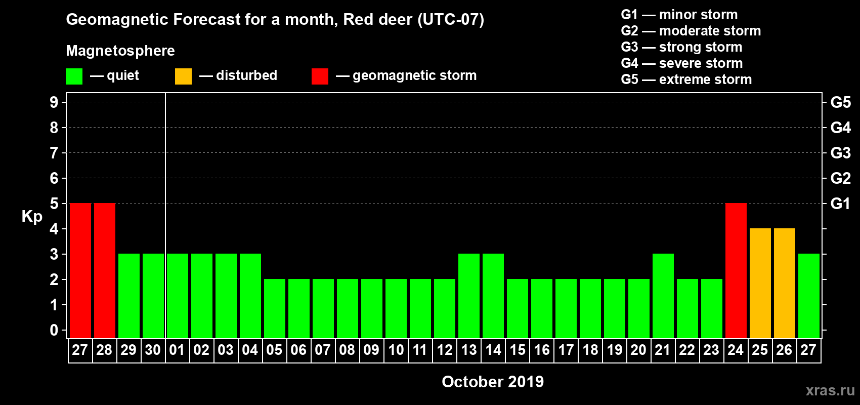 Geomagnetic storm forecast in Red deer for Sep 27, 2019