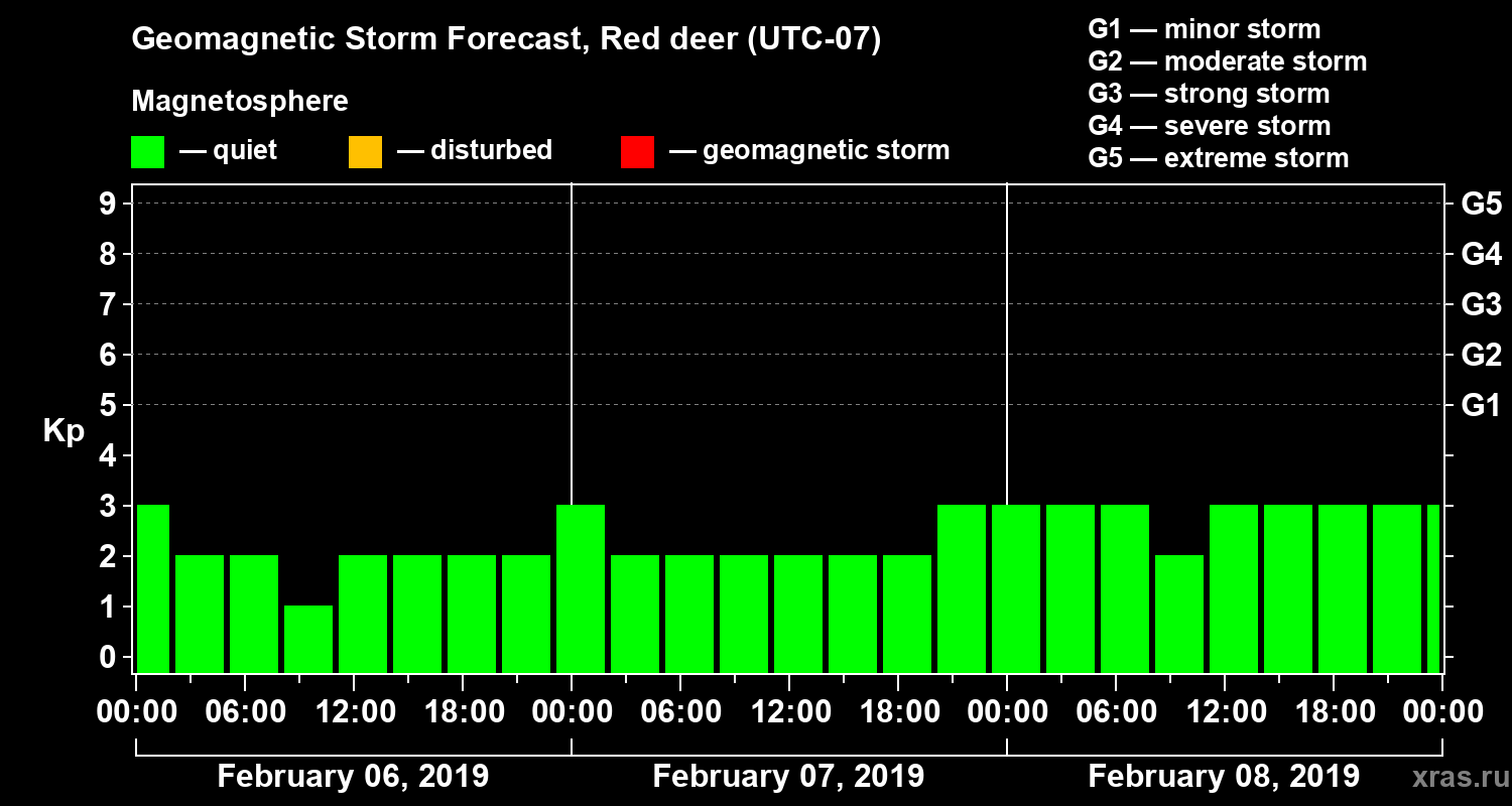 Geomagnetic storm forecast in Red deer for Feb 06, 2019