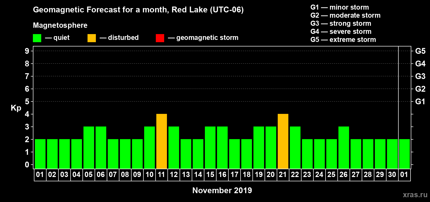Geomagnetic storm forecast in Red Lake for Nov 01, 2019