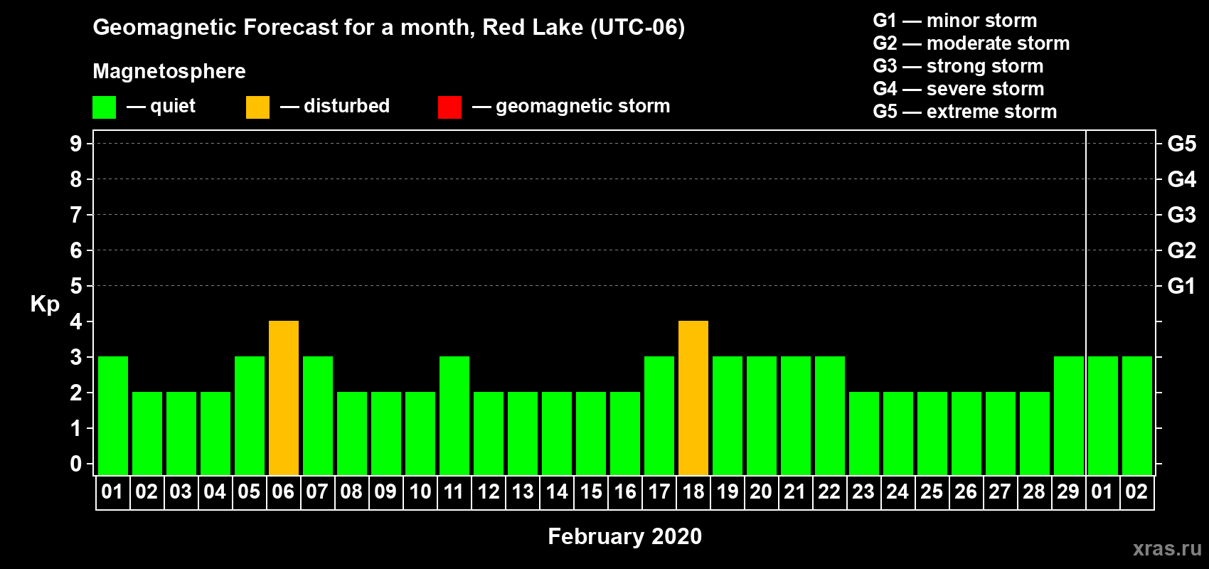 Geomagnetic storm forecast in Red Lake for Feb 01, 2020