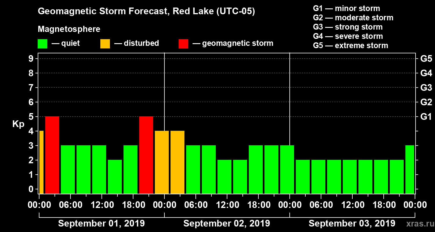 Geomagnetic storm forecast in Red Lake for Sep 01, 2019