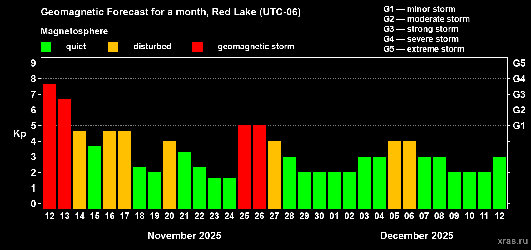 Geomagnetic storm forecast in Red Lake for Nov 12, 2025