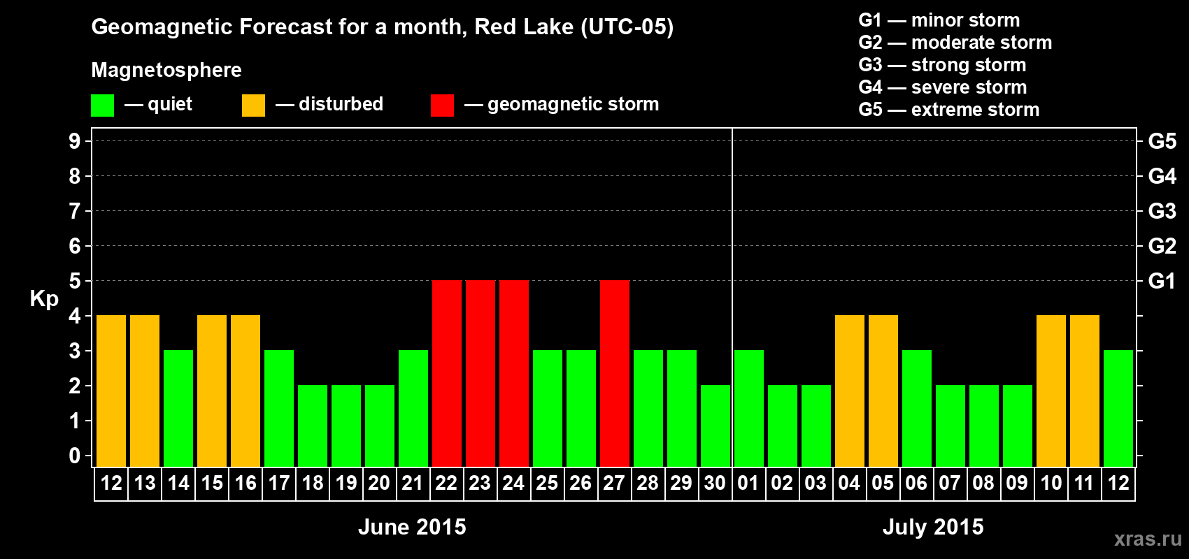 Geomagnetic storm forecast in Red Lake for Jun 12, 2015