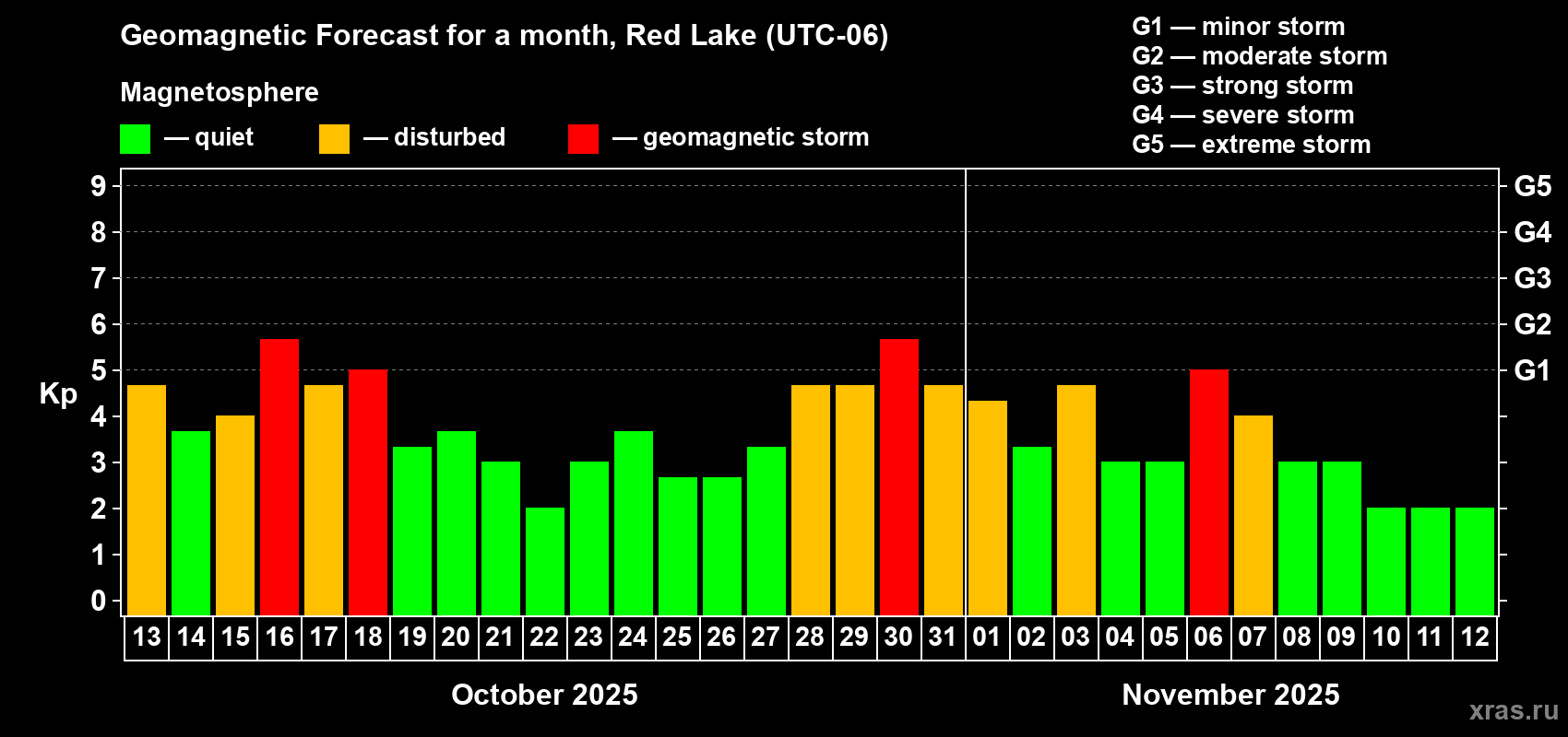 Geomagnetic storm forecast in Red Lake for Oct 13, 2025