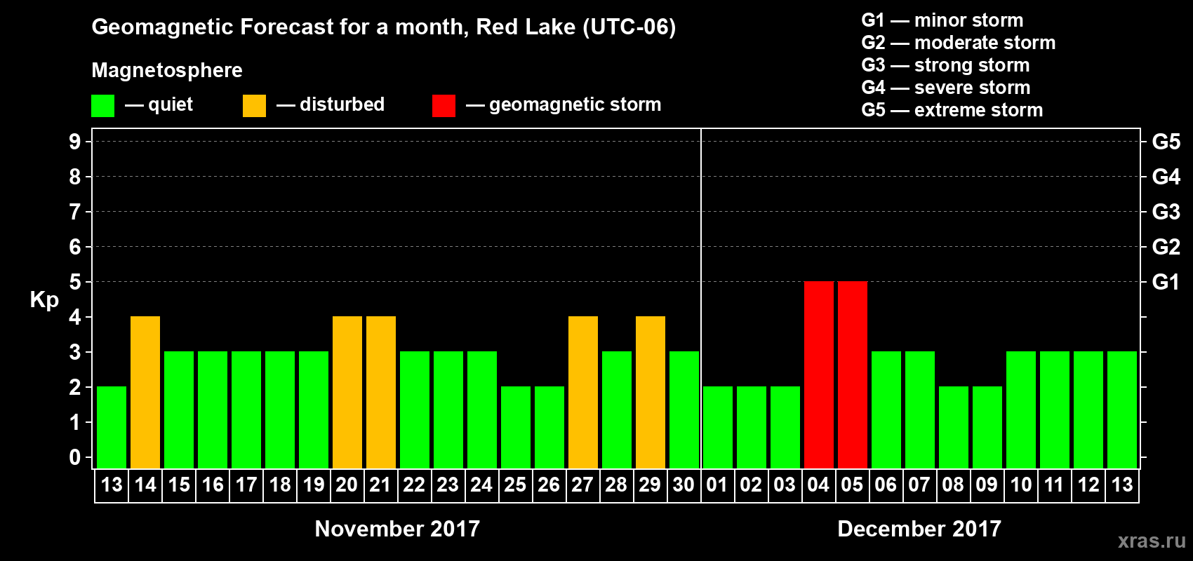 Geomagnetic storm forecast in Red Lake for Nov 13, 2017