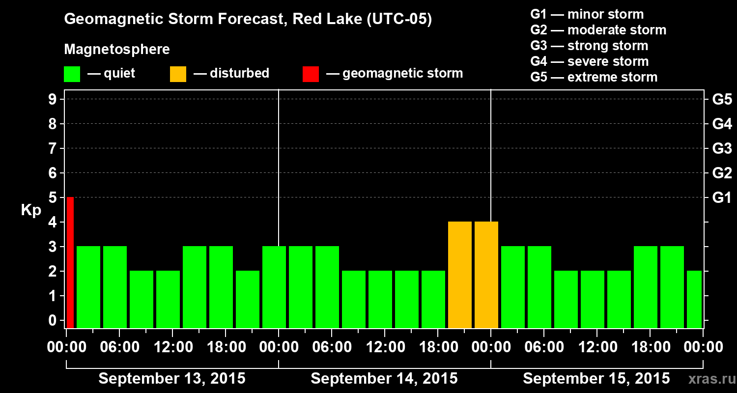 Geomagnetic storm forecast in Red Lake for Sep 13, 2015