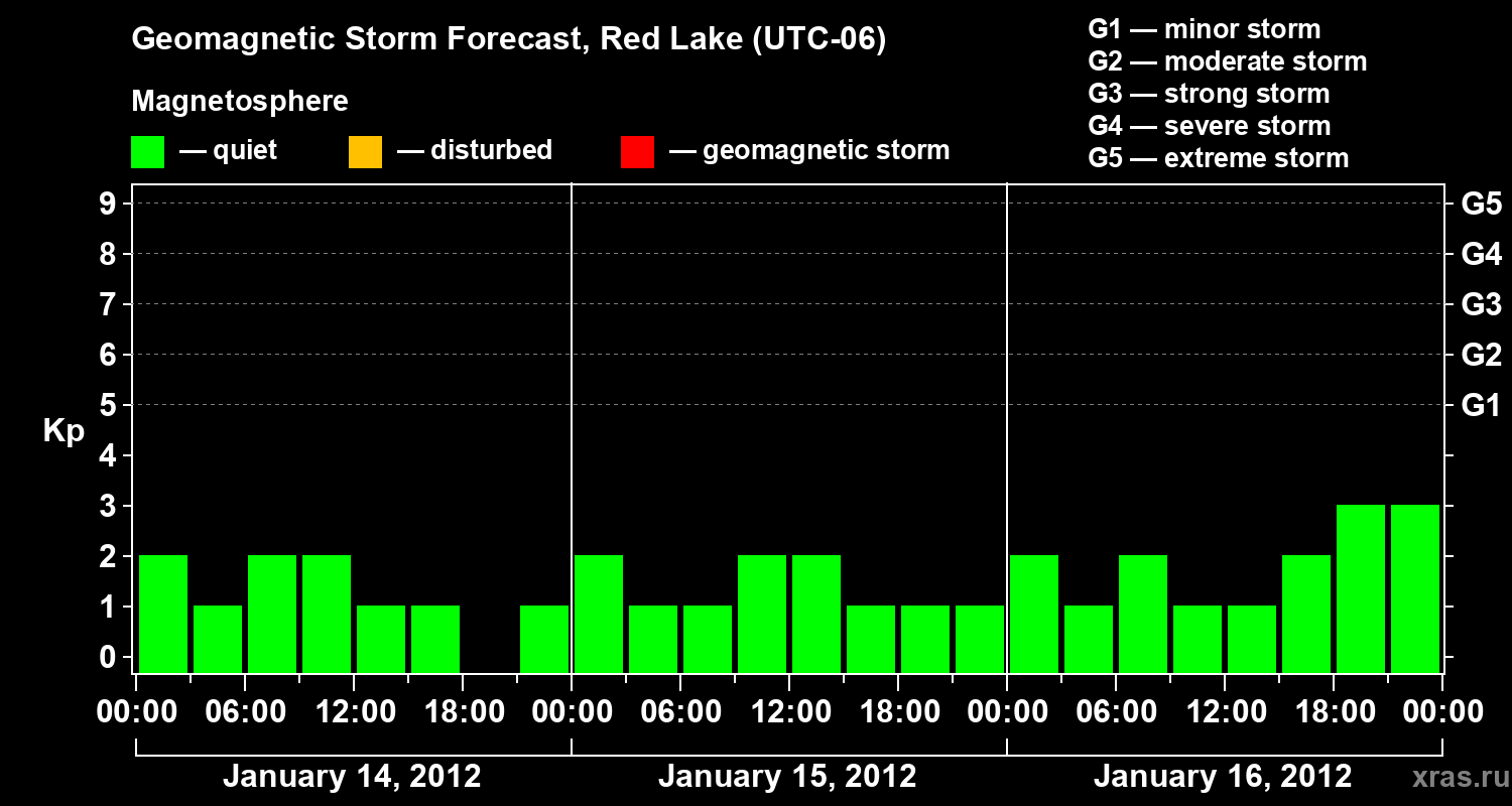 Geomagnetic storm forecast in Red Lake for Jan 14, 2012