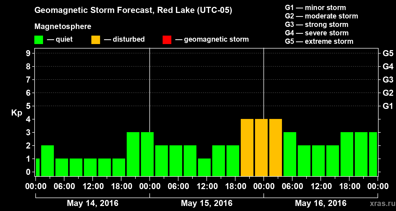 Geomagnetic storm forecast in Red Lake for May 14, 2016