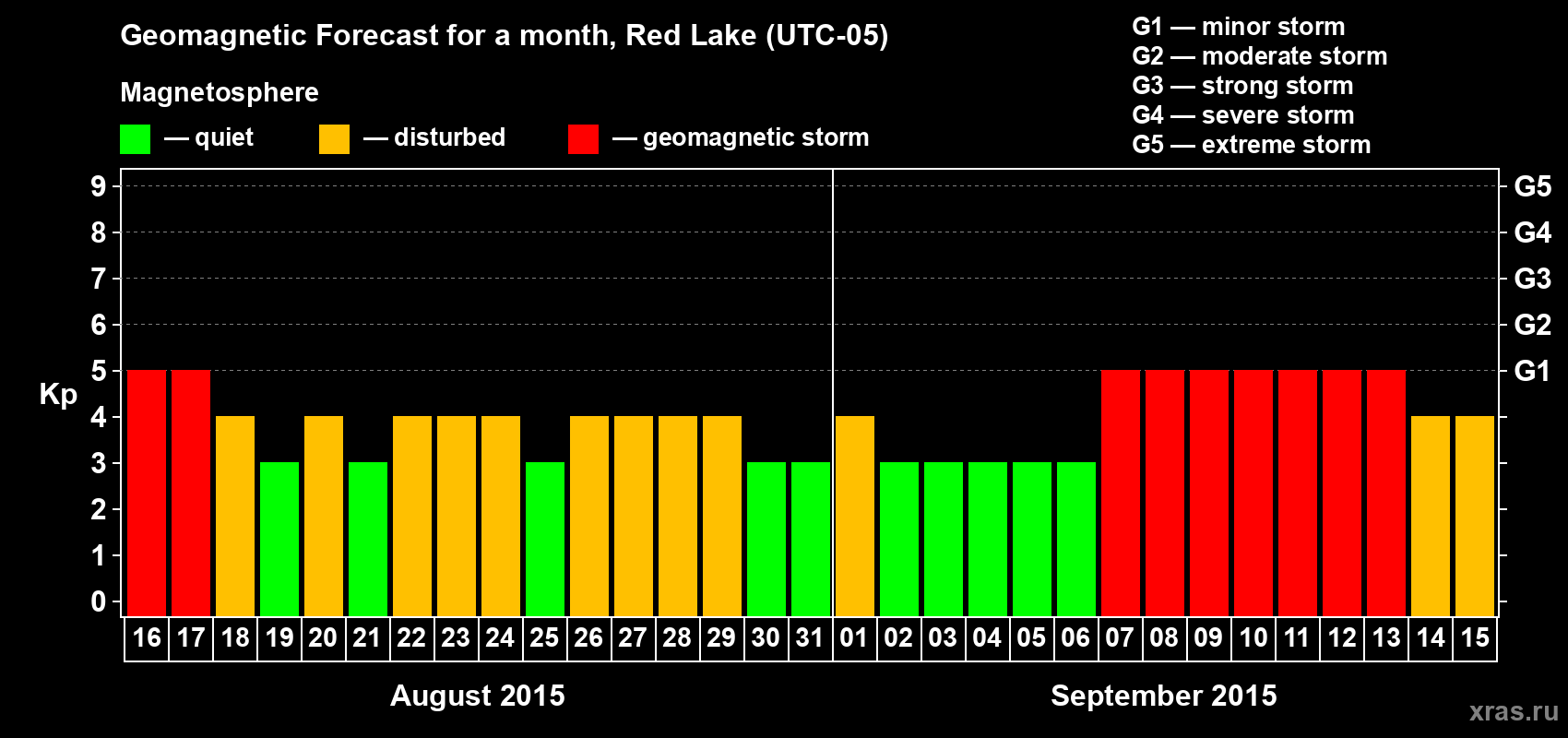 Geomagnetic storm forecast in Red Lake for Aug 16, 2015