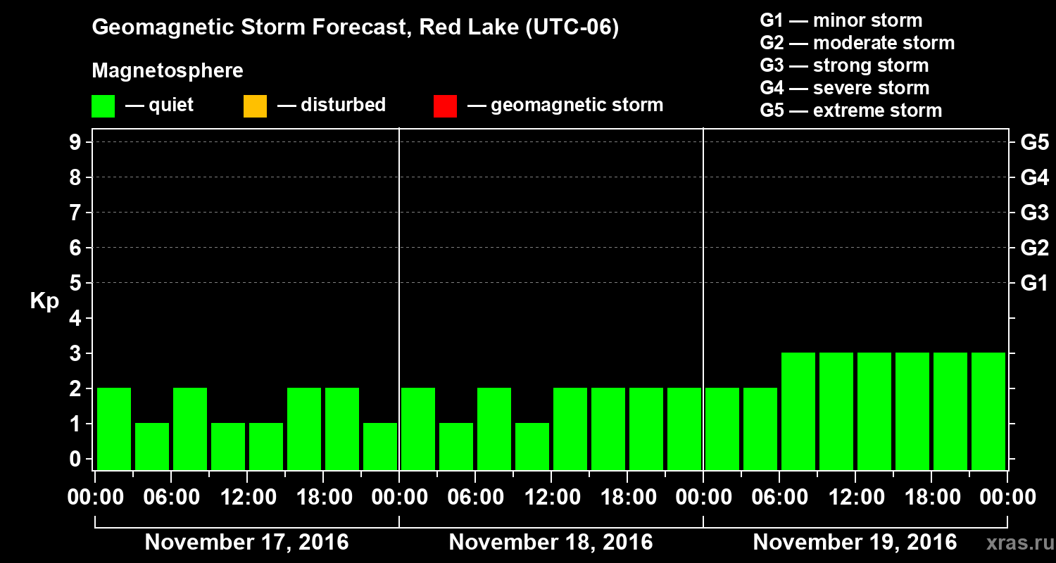 Geomagnetic storm forecast in Red Lake for Nov 17, 2016