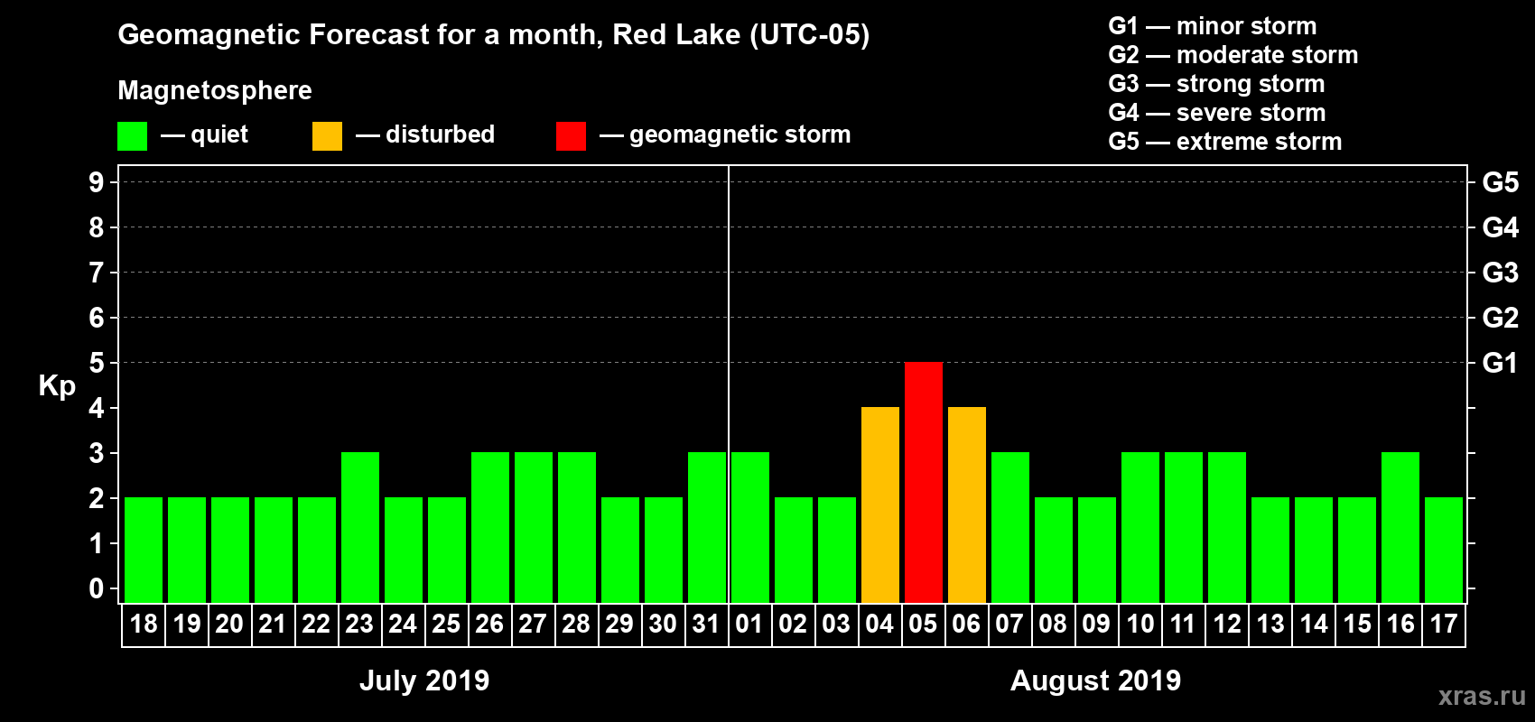 Geomagnetic storm forecast in Red Lake for Jul 18, 2019