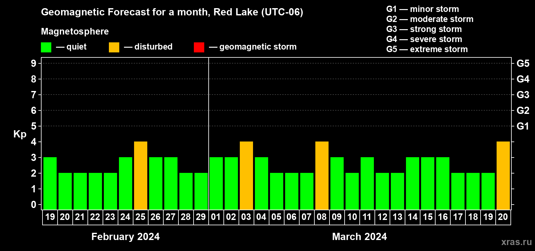 Geomagnetic storm forecast in Red Lake for Feb 19, 2024