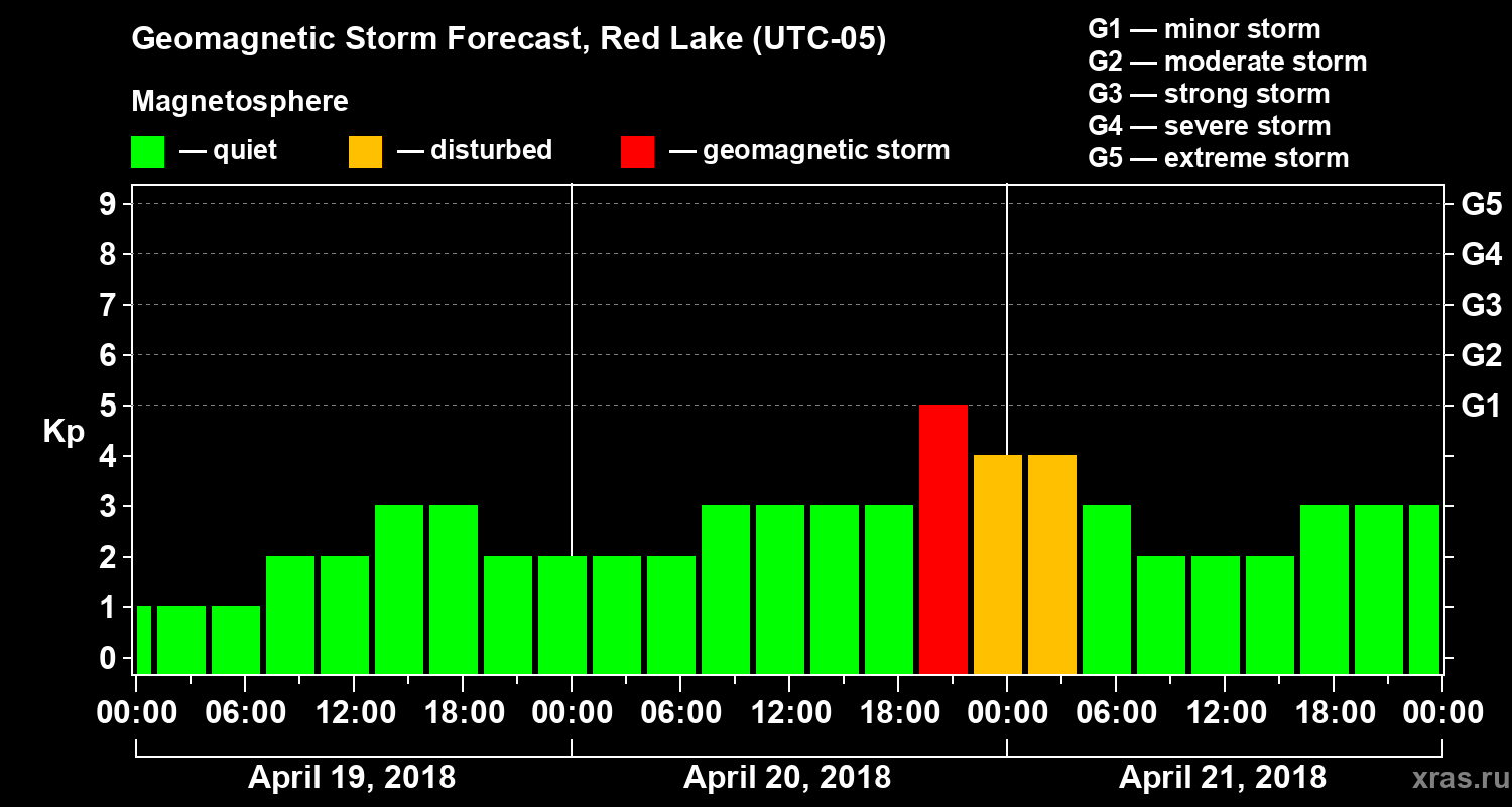 Geomagnetic storm forecast in Red Lake for Apr 19, 2018