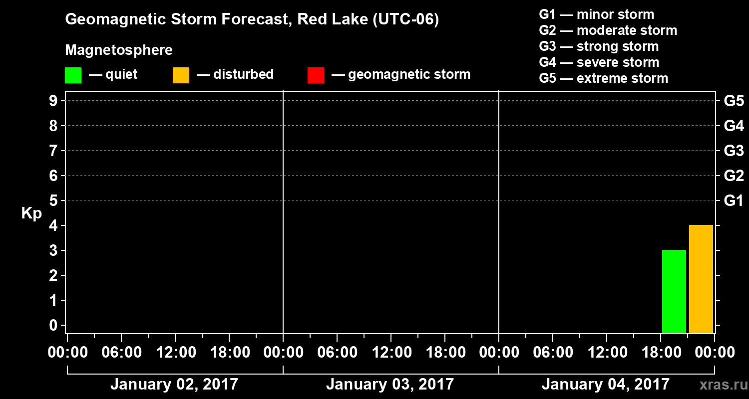 Geomagnetic storm forecast in Red Lake for Jan 02, 2017
