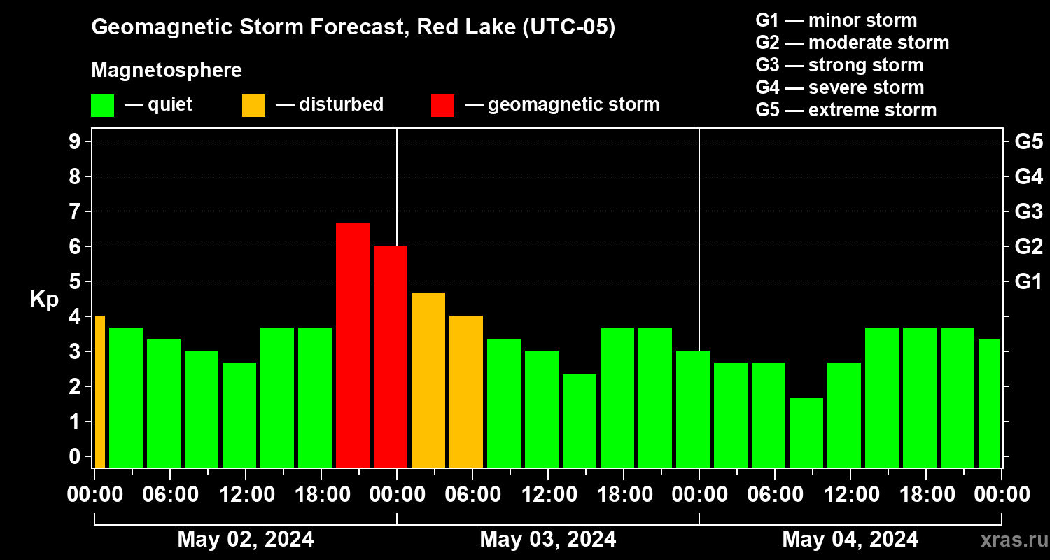 Geomagnetic storm forecast in Red Lake for May 02, 2024