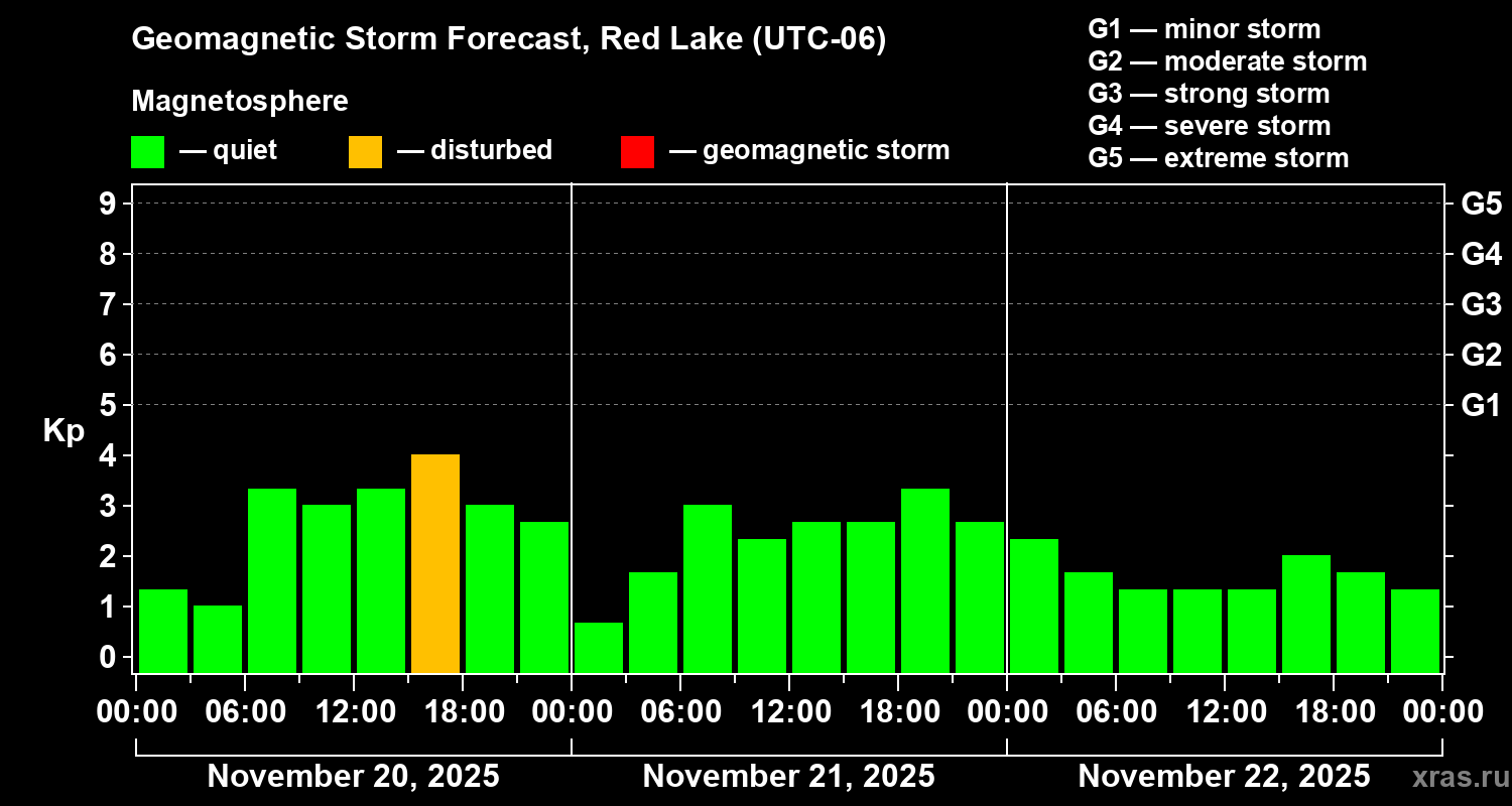 Geomagnetic storm forecast in Red Lake for Nov 20, 2025