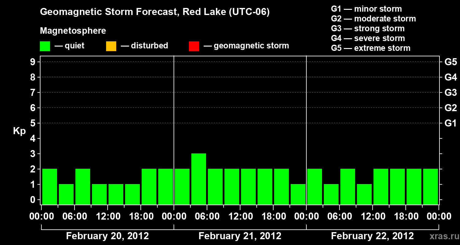 Geomagnetic storm forecast in Red Lake for Feb 20, 2012