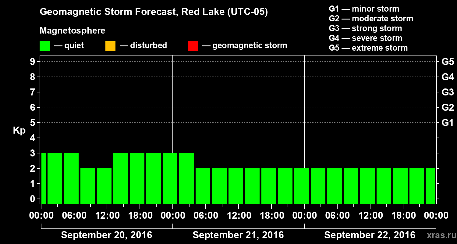 Geomagnetic storm forecast in Red Lake for Sep 20, 2016