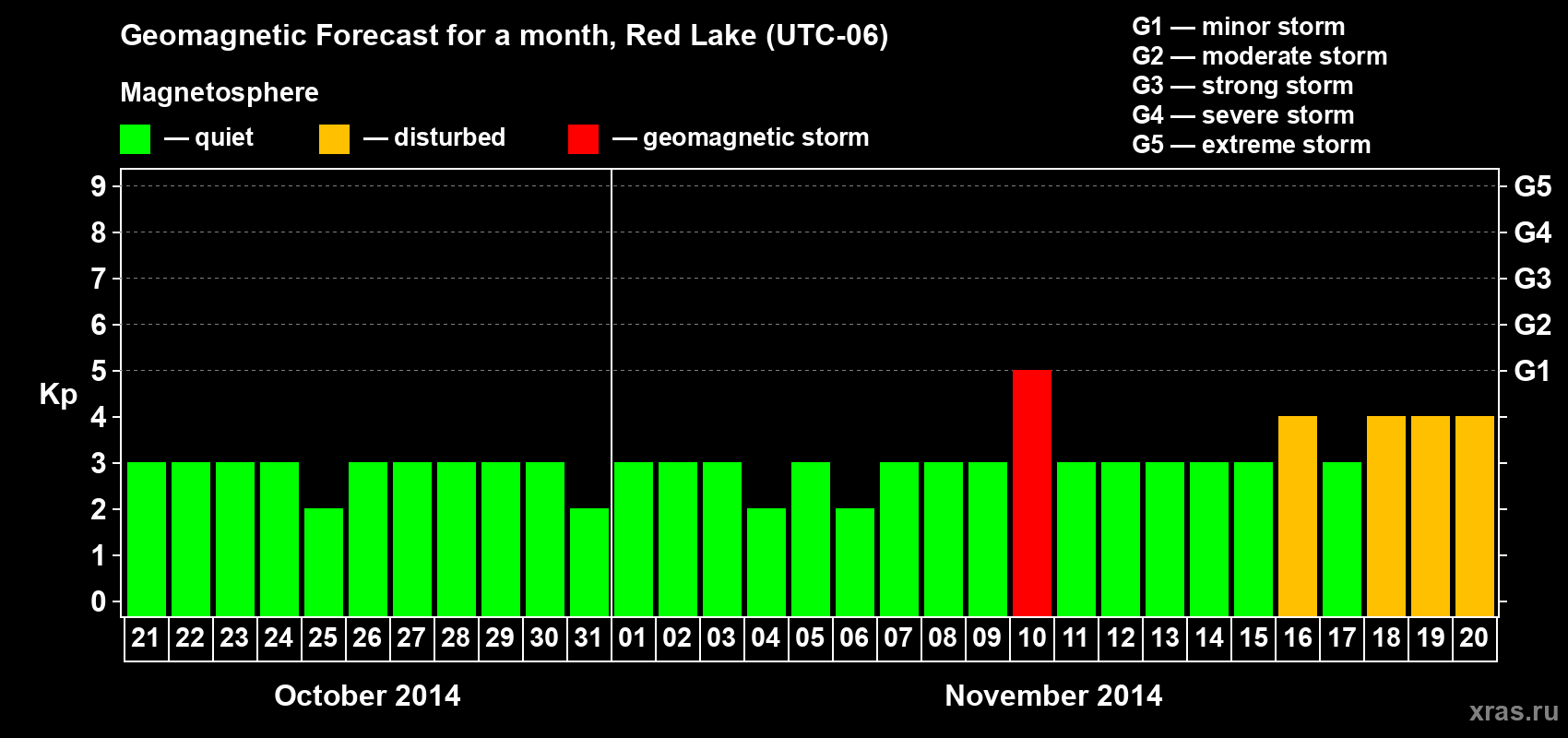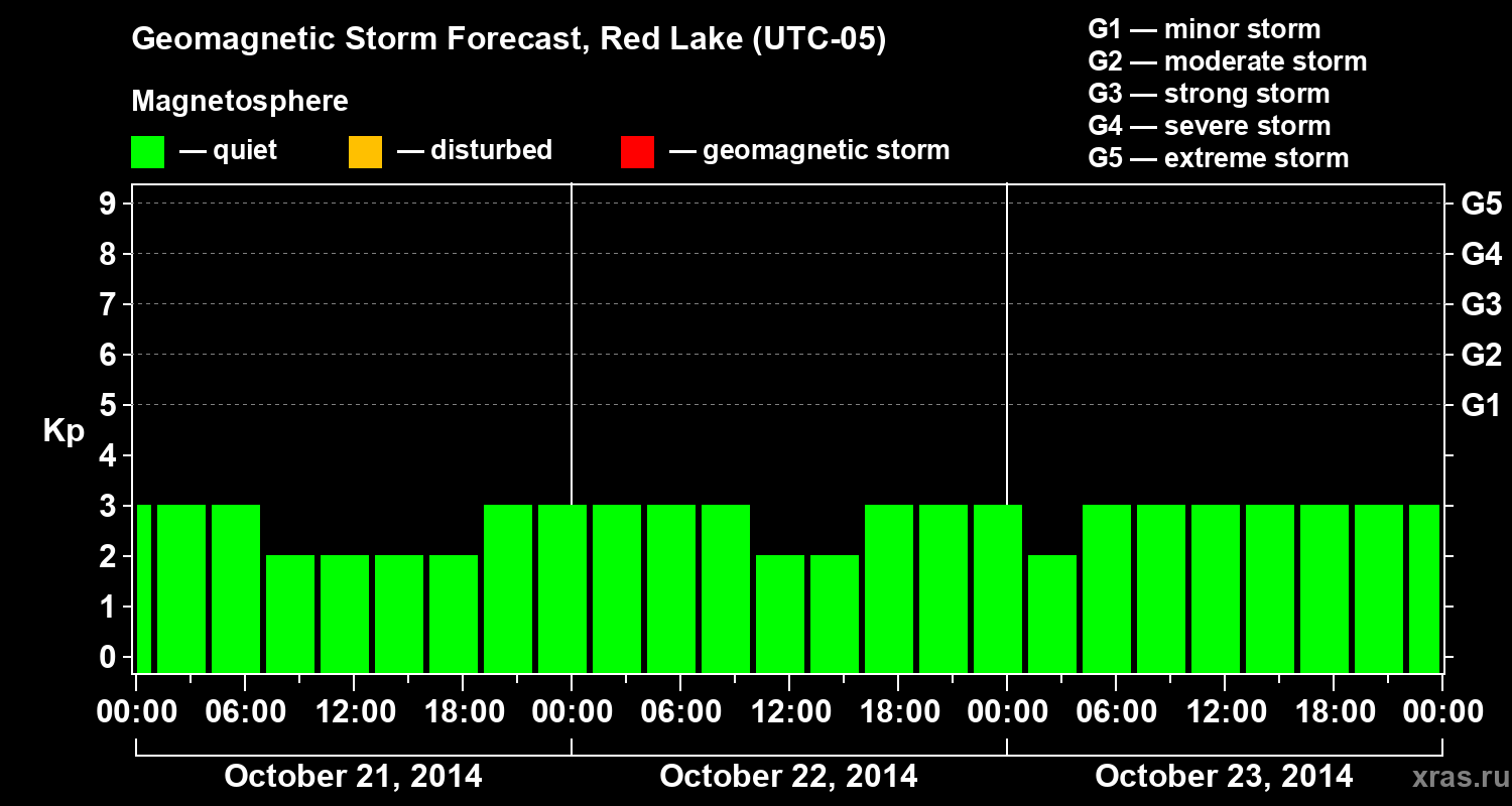 Geomagnetic storm forecast in Red Lake for Oct 21, 2014