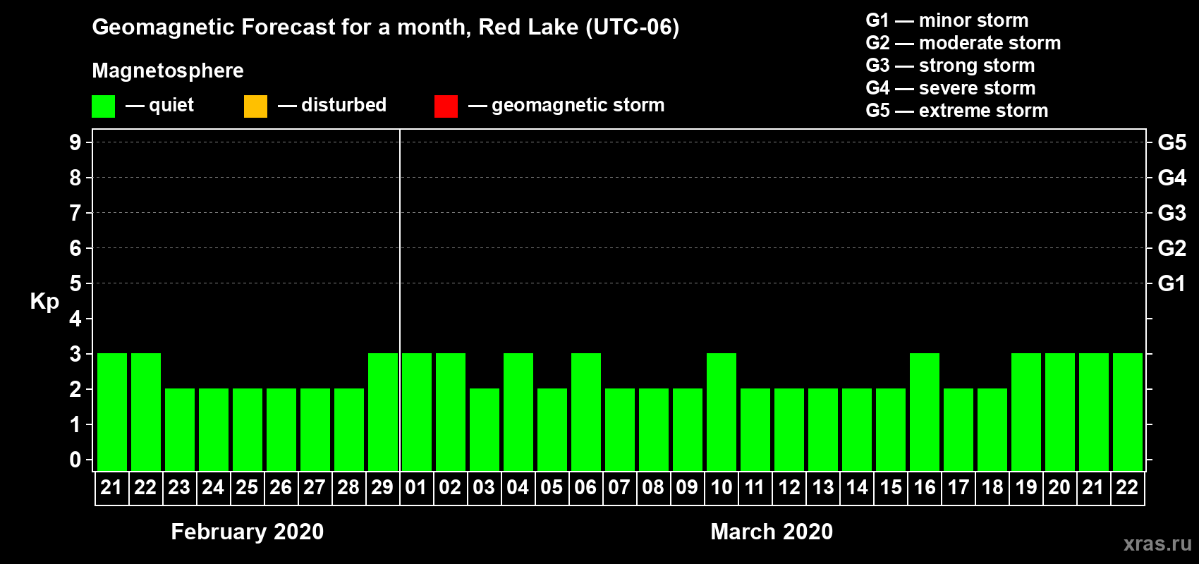 Geomagnetic storm forecast in Red Lake for Feb 21, 2020