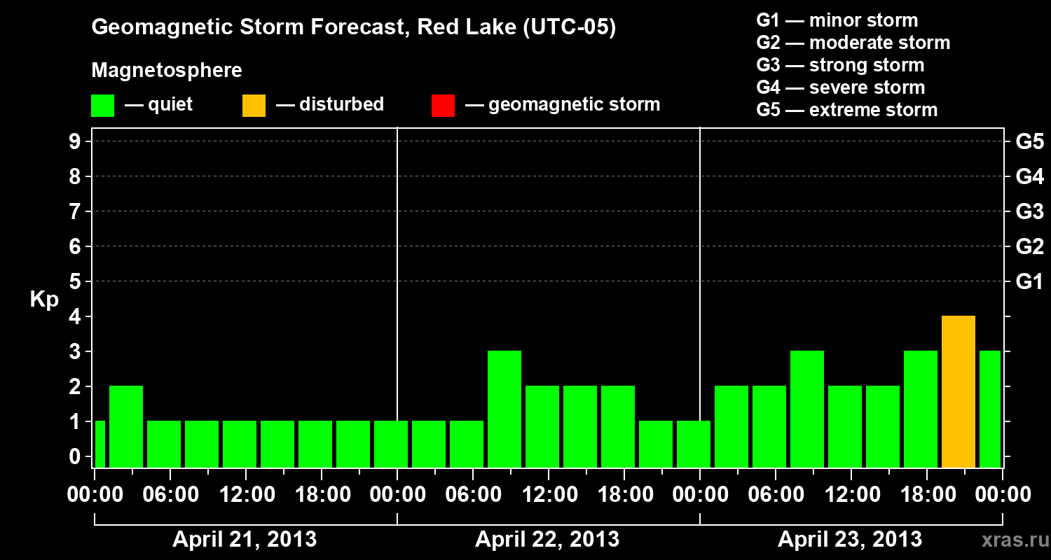 Geomagnetic storm forecast in Red Lake for Apr 21, 2013