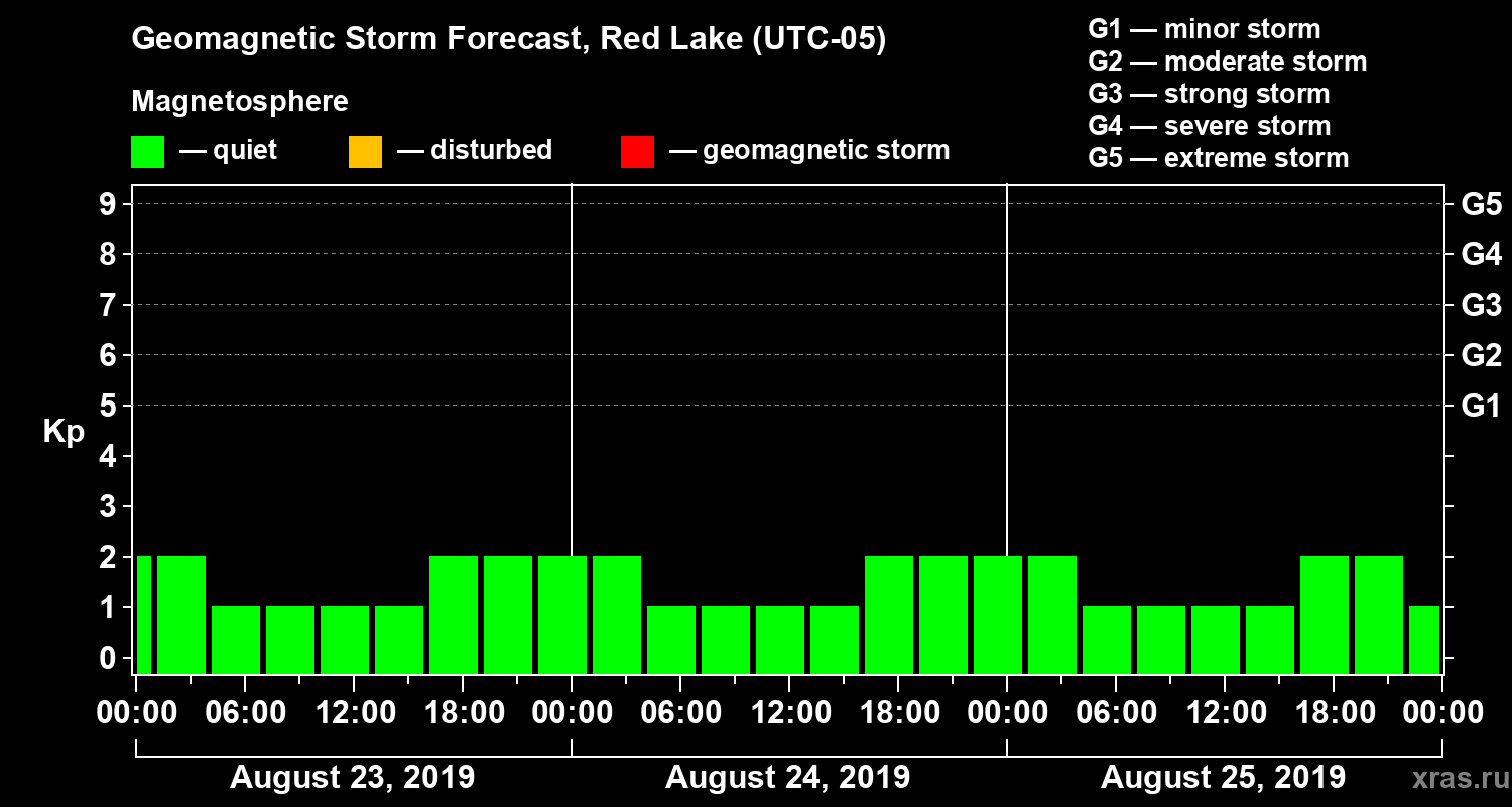 Geomagnetic storm forecast in Red Lake for Aug 23, 2019