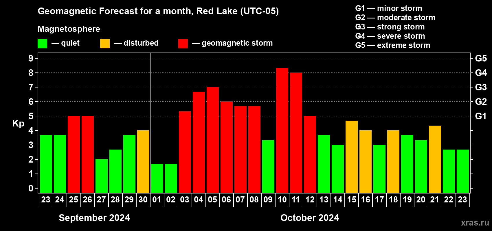 Geomagnetic storm forecast in Red Lake for Sep 23, 2024