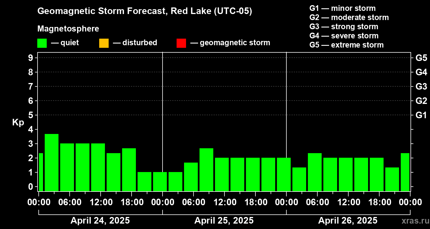Geomagnetic storm forecast in Red Lake for Apr 24, 2025