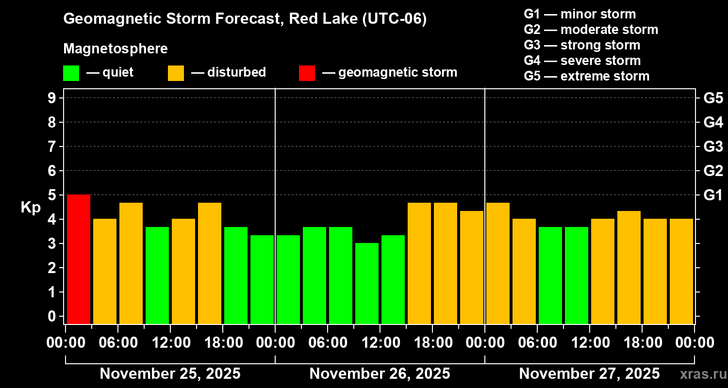 Geomagnetic storm forecast in Red Lake for Nov 25, 2025