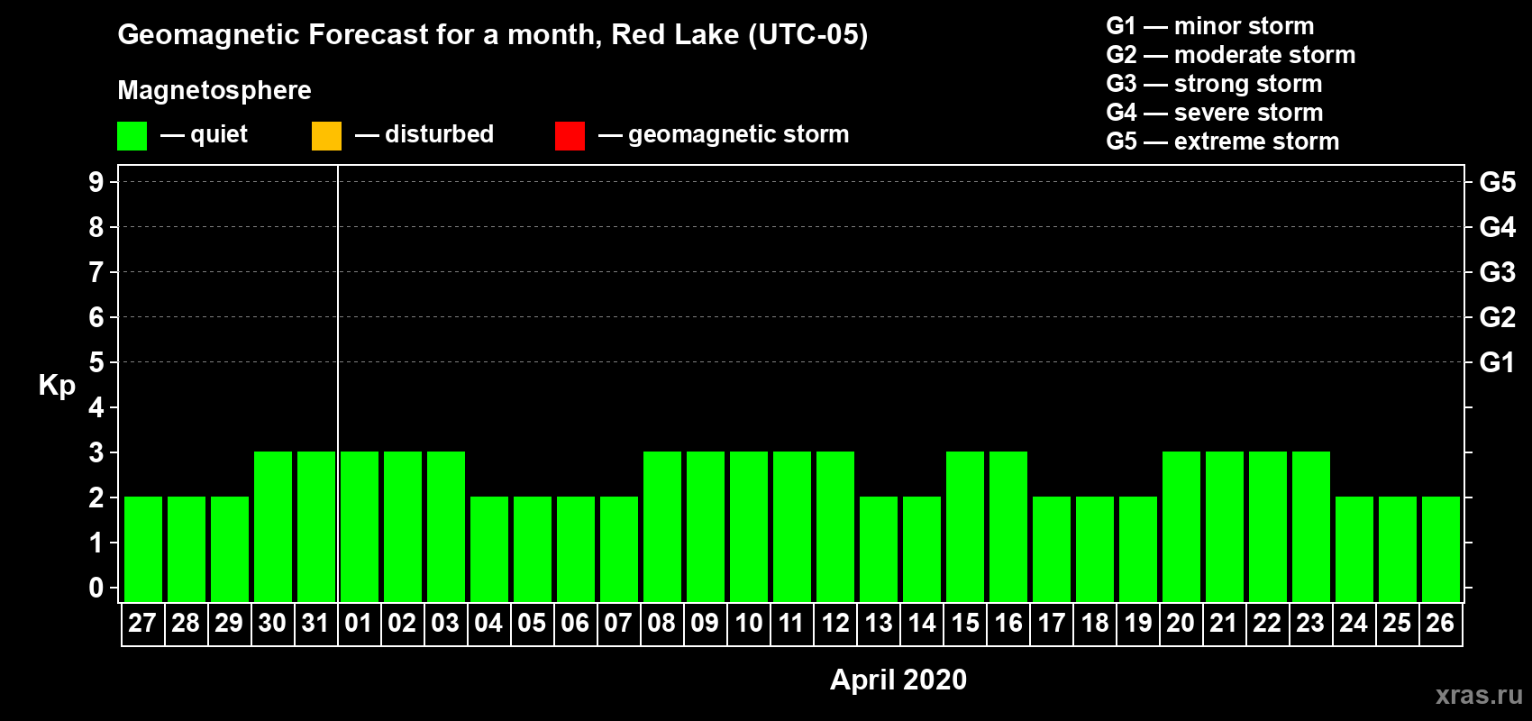 Geomagnetic storm forecast in Red Lake for Mar 27, 2020