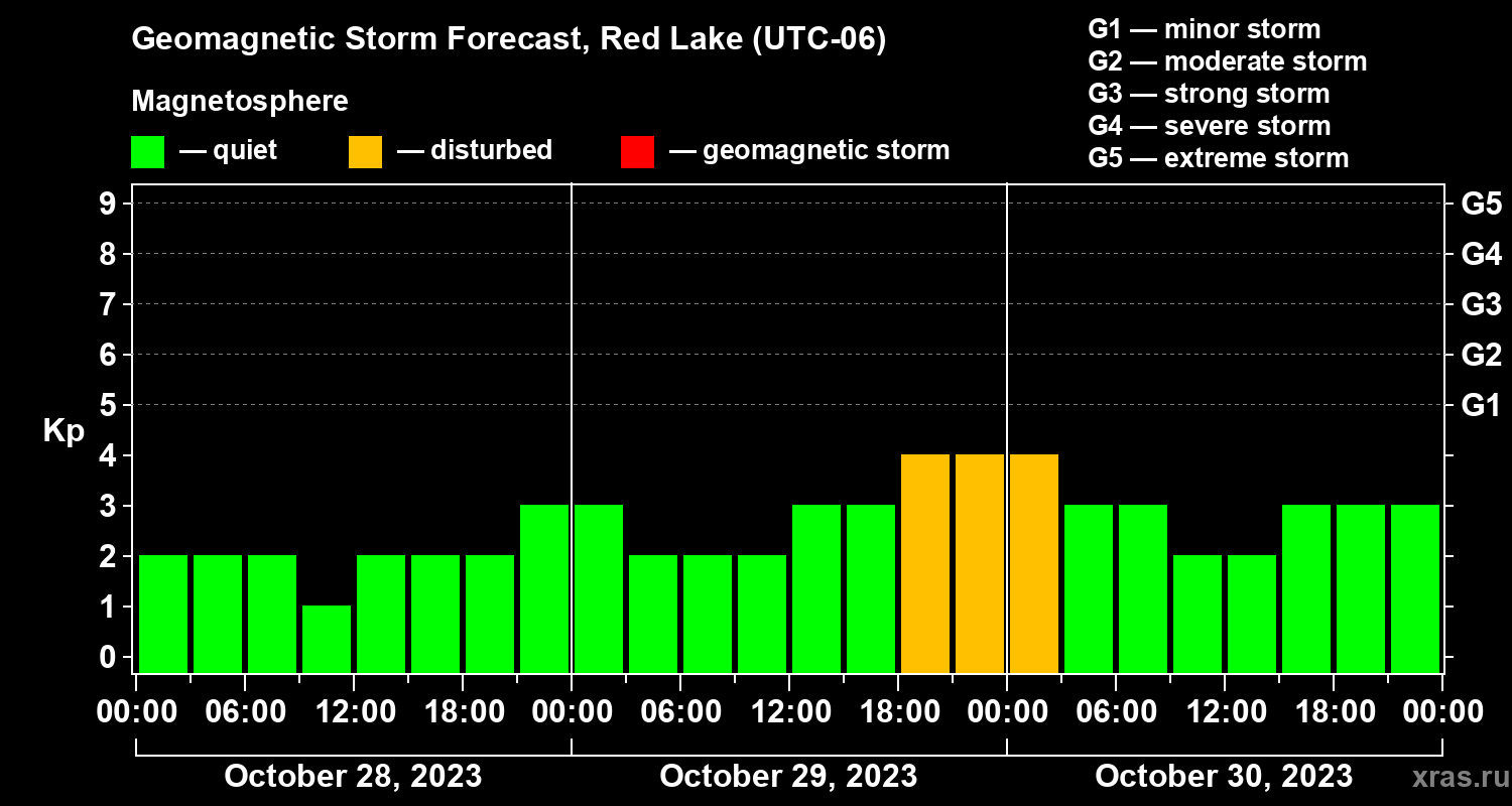 Geomagnetic storm forecast in Red Lake for Oct 28, 2023