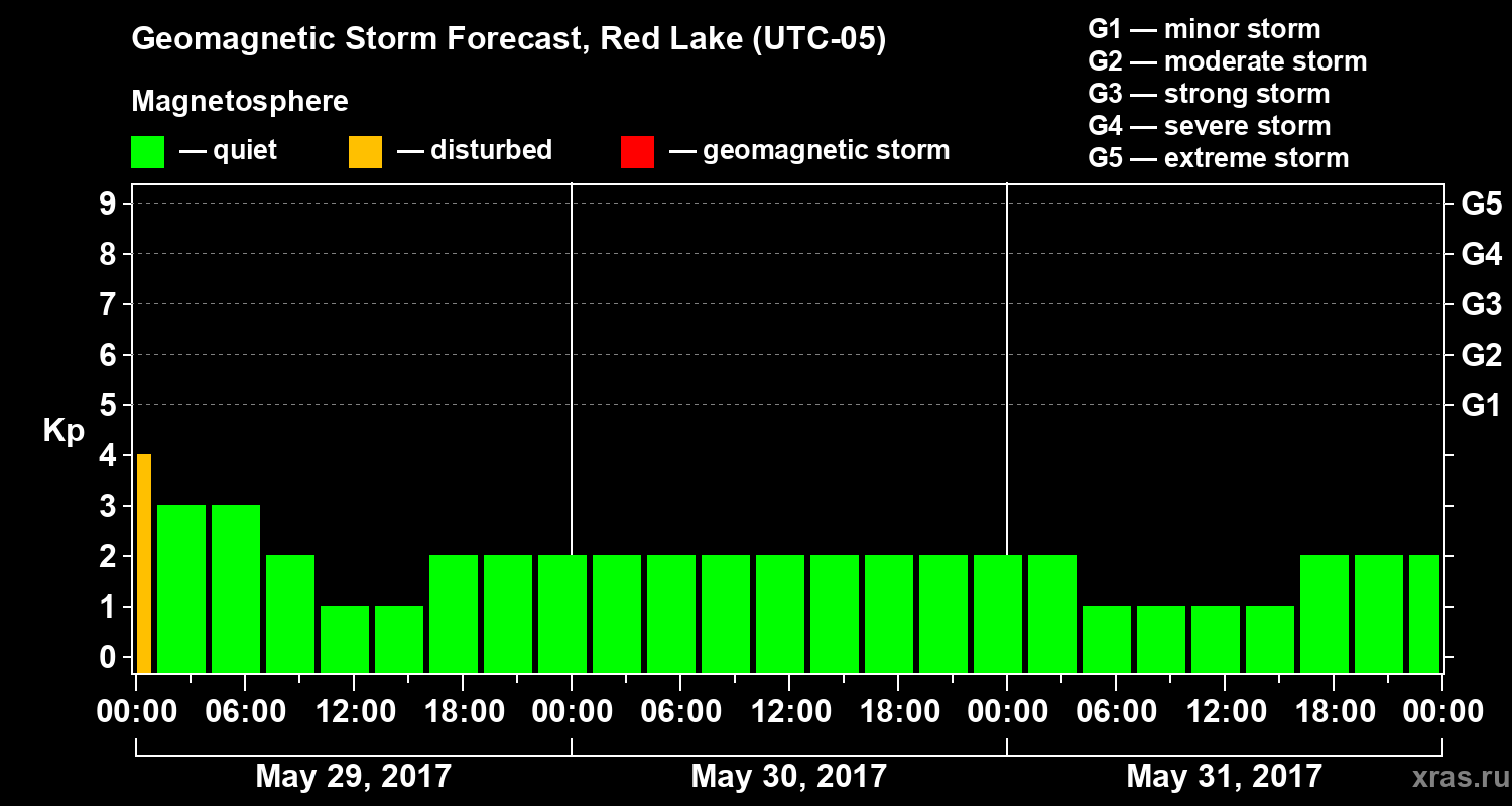 Geomagnetic storm forecast in Red Lake for May 29, 2017
