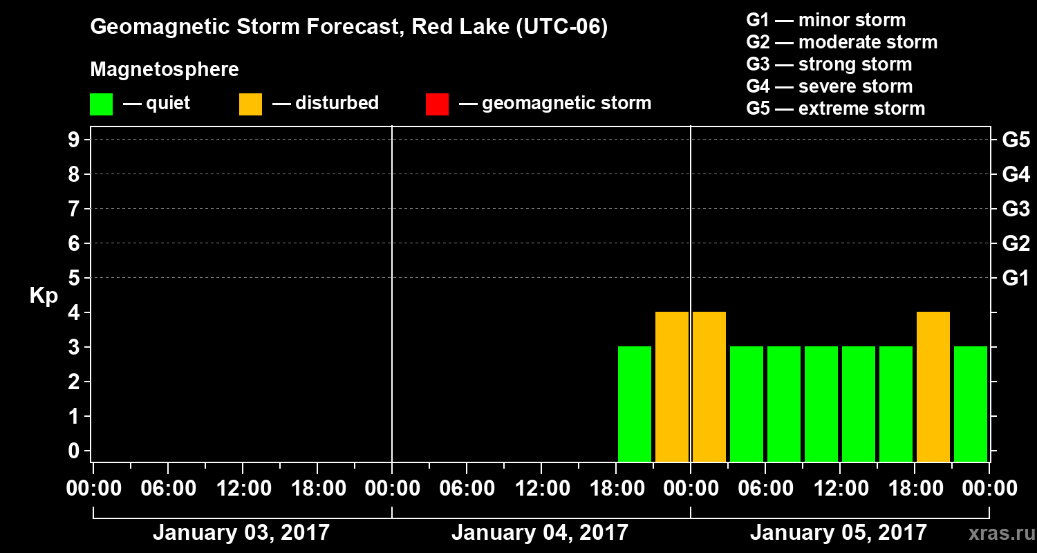 Geomagnetic storm forecast in Red Lake for Jan 03, 2017