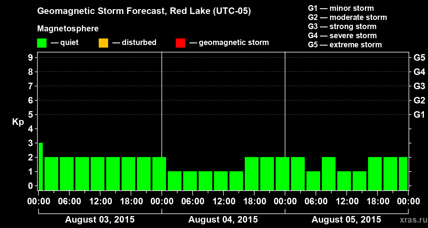 Geomagnetic storm forecast in Red Lake for Aug 03, 2015
