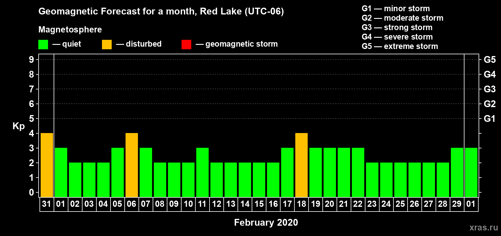 Geomagnetic storm forecast in Red Lake for Jan 31, 2020