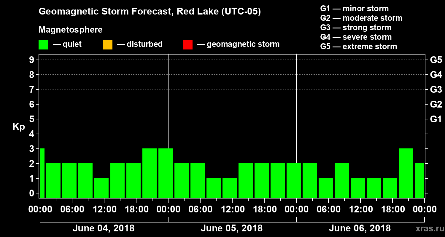 Geomagnetic storm forecast in Red Lake for Jun 04, 2018