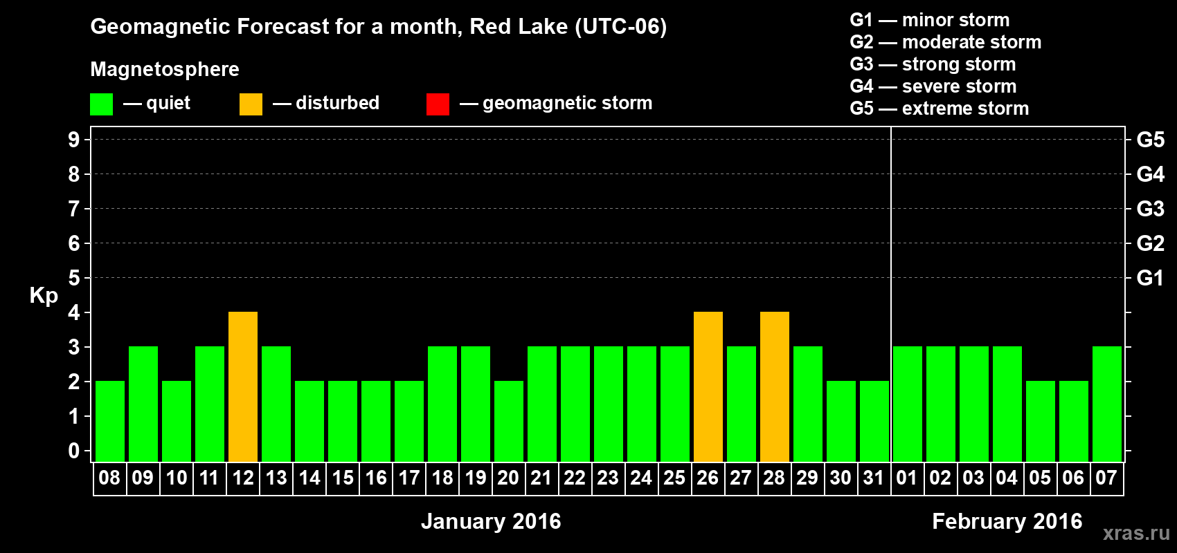 Geomagnetic storm forecast in Red Lake for Jan 08, 2016