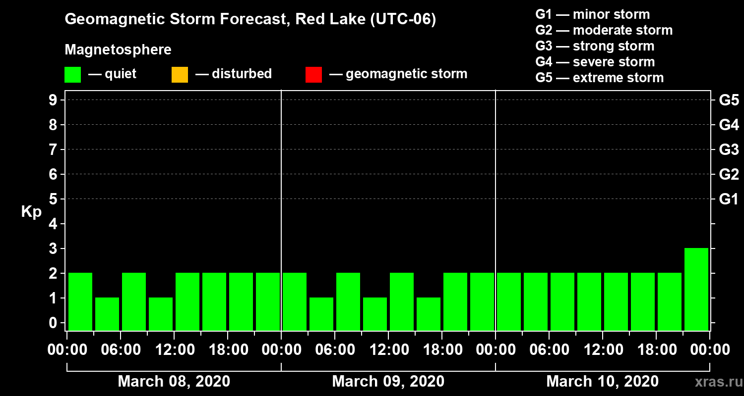 Geomagnetic storm forecast in Red Lake for Mar 08, 2020