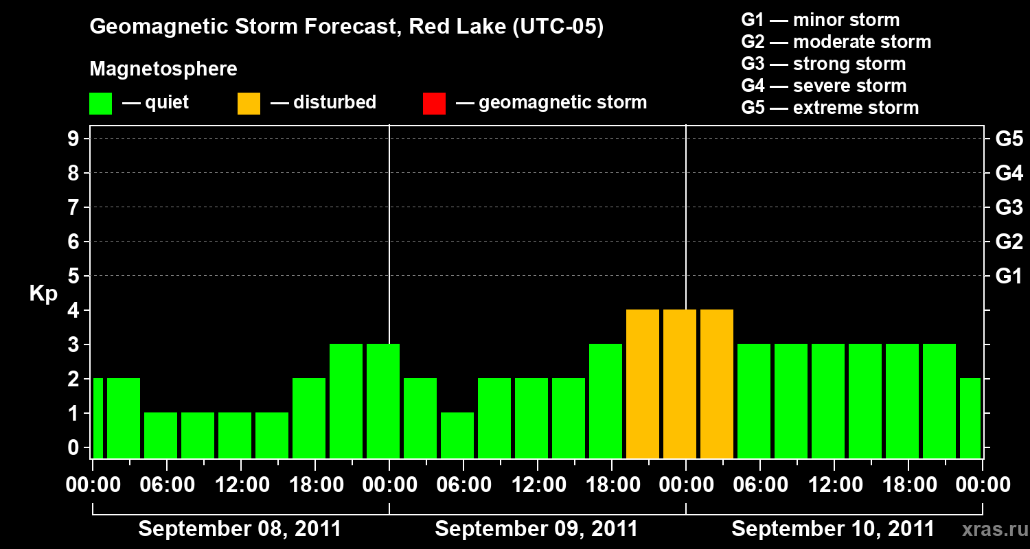 Geomagnetic storm forecast in Red Lake for Sep 08, 2011