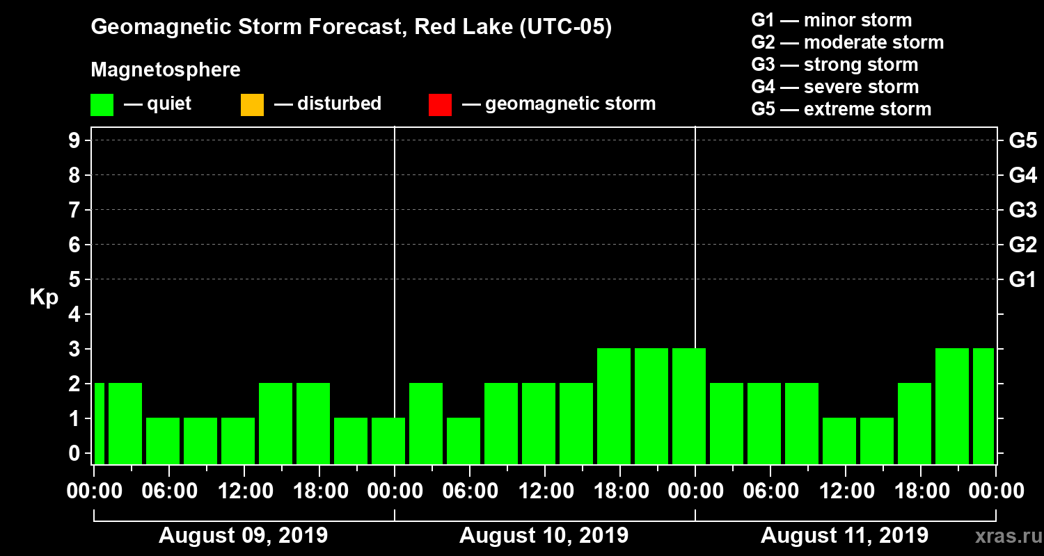 Geomagnetic storm forecast in Red Lake for Aug 09, 2019