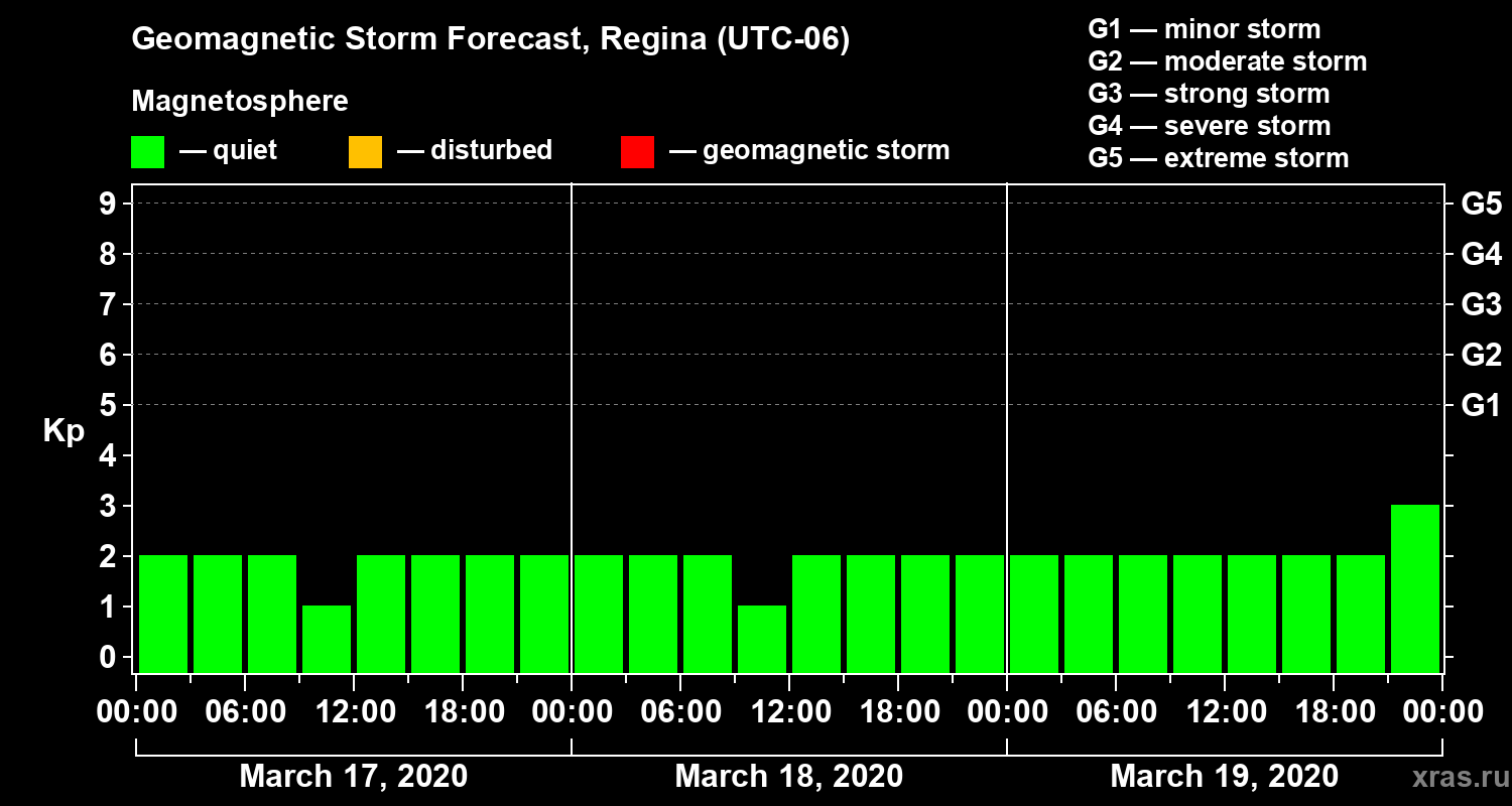 Geomagnetic storm forecast in Regina for Mar 17, 2020