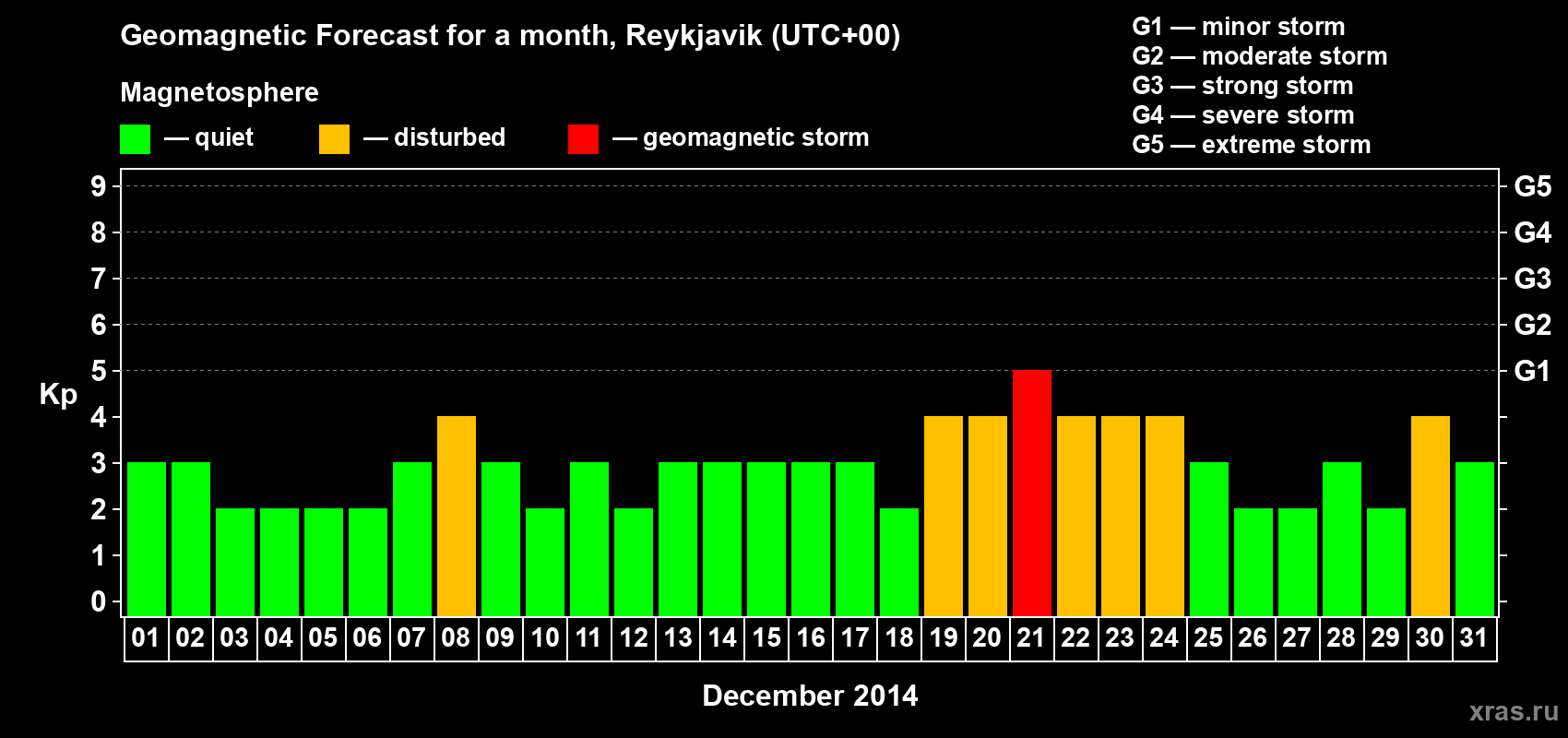Geomagnetic storm forecast in Reykjavik for Dec 01, 2014