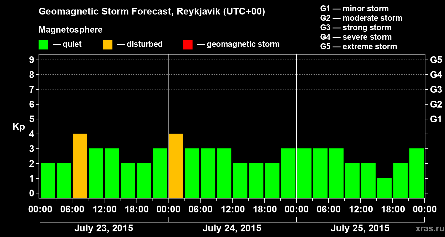Geomagnetic storm forecast in Reykjavik for Jul 23, 2015