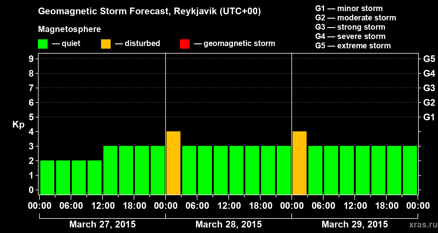 Geomagnetic storm forecast in Reykjavik for Mar 27, 2015